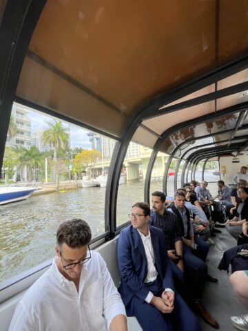 Participants learn about resiliency challenges and adaptations in a boat tour of Fort Lauderdale’s waterways