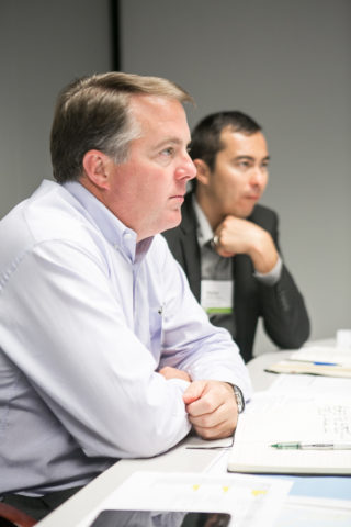 ULI Advisory Services Panel, Toa Baja, Puerto Rico. Advisory Panel members Bob van der Zande (left) and Fernando Liaño Berjano study a map of Toa Baja aboard the bus that would take the group to visit various sites within the municipality of Toa Baja.