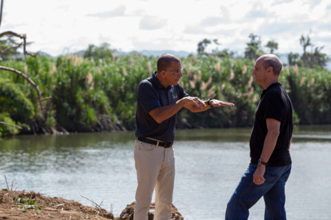ULI Advisory Services Panel, Toa Baja, Puerto Rico. Advisory Panel members accompany mayor of Toa Baja, “Betito” Márquez (left) on a field visit of diverse areas of the municipality. In this image the mayor speaks with Tom Roth, one of the panelists on their visit to the banks of Rio La Plata.