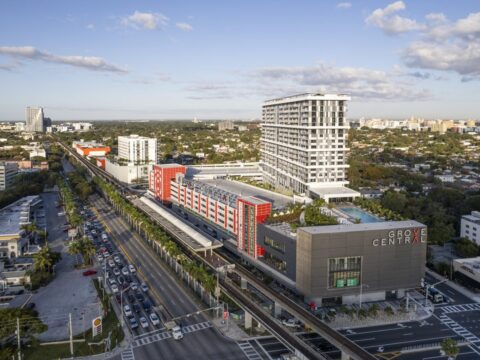 Grove Central is a transformative, transit-oriented development by Terra and Grass River that has redefined the commercial and residential landscape of Coconut Grove. Strategically positioned at the intersection of US1 and SW 27th Avenue, the project combines a multi-modal transit hub with a 23-story residential tower featuring 402 multifamily and workforce housing units, a 1,250-space public parking garage, 170,000 square feet of retail, and a series of public realm improvements. What was once a vacant lot adjacent to the Coconut Grove Metrorail station has become a national model for smart growth – merging density, walkability, transit access, and activated street-level retail in a vertically integrated development that prioritizes resilience and community connection.